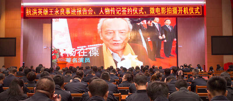 西夏區(qū)組織舉行抗洪英雄王永良事跡報(bào)告會(huì)、人物傳記簽約儀式、微電影拍攝開(kāi)機(jī)儀式的活動(dòng)現(xiàn)場(chǎng)