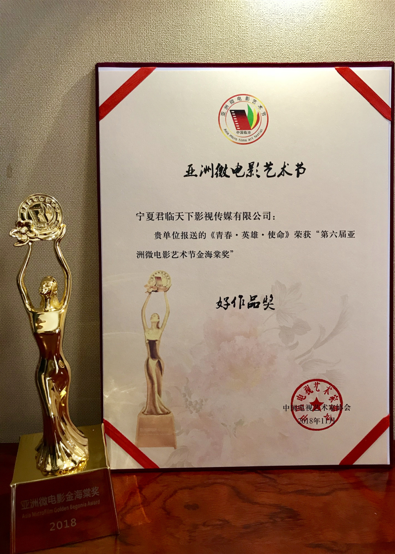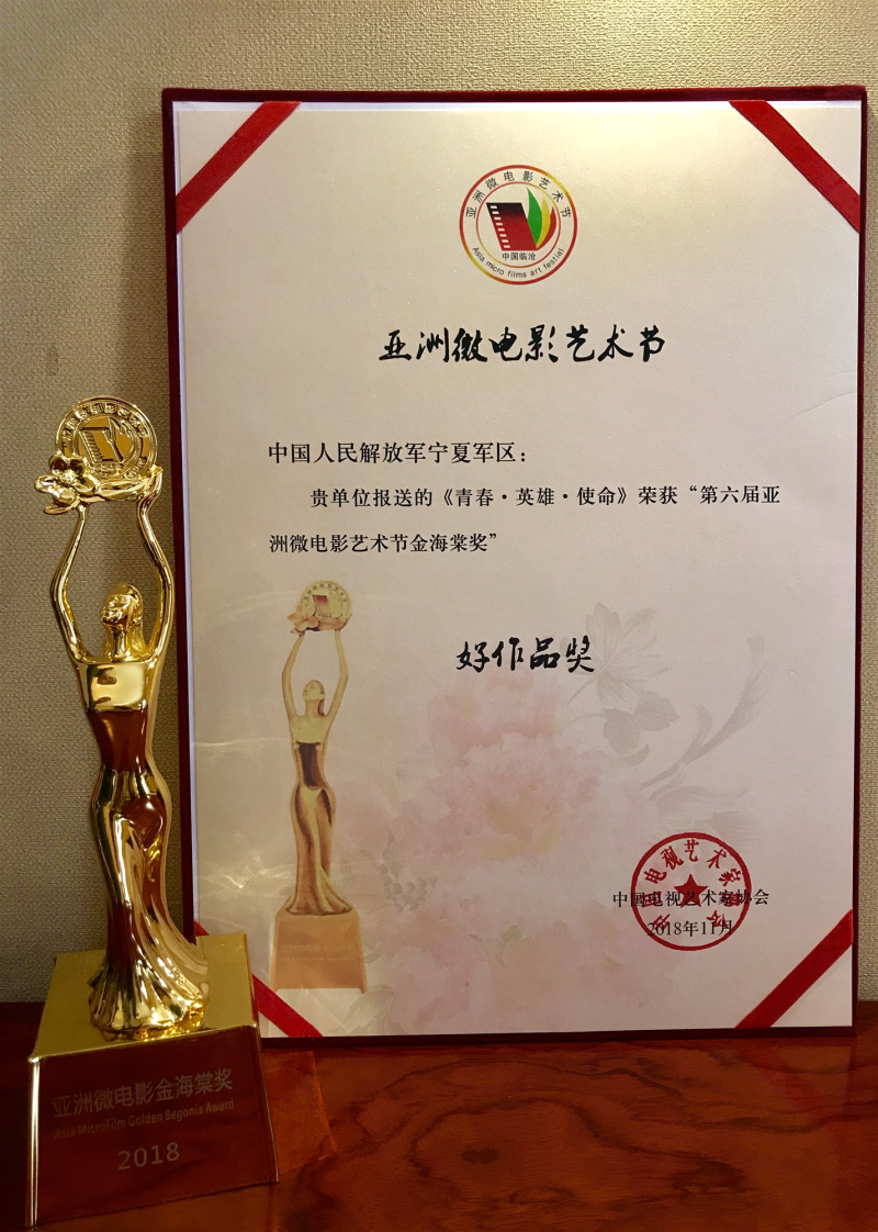 11月7日,第六屆亞洲微電影藝術(shù)節(jié)頒獎典禮在云南臨滄舉行,由中國人民解放軍寧夏軍區(qū)出品,寧夏回族自治區(qū)微電影協(xié)會、寧夏君臨天下影視傳媒有限公司、北京獨瑪拉初影業(yè)有限公司拍攝的公益征兵影片《青春·英雄·使命》榮獲第六屆亞洲微電影藝術(shù)節(jié)“金海棠”大獎。
