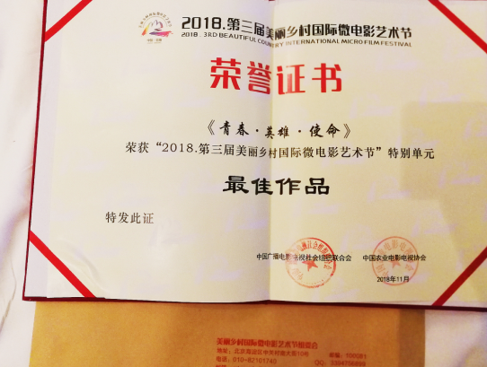 由中國人民解放軍寧夏軍區、寧夏回族自治區微電影協會、寧夏君臨天下影視傳媒有限公司報送的公益征兵影片《青春·英雄·使命》榮獲組委會最佳影片大獎,中國人民解放軍寧夏軍區征兵影片總導演魏軍及劇組代表參加了頒獎典禮。《青春·英雄·使命》從策劃到拍攝共計耗時30天,影片通過少年子俊、大學生小王、軍嫂雪梅、老兵爺爺的小家情展現了青春、英雄、使命的家國情。剛剛被中國人民解放軍寧夏軍區授予中國人民解放軍寧夏軍區公益征兵影片優秀奉獻導演的魏軍表示:“崇尚榮譽、尊崇英雄、精忠報國是該片展現的主要思想,祖國的英雄和榮譽是值得我們尊崇和崇尚的,通過普通的人物奉獻詮釋了我們、他們和她們對祖國的奉獻及捍衛。”據悉《青春·英雄·使命》先后榮獲第六屆亞洲微電影藝術節金海棠獎、第三屆美麗鄉村國際微電影藝術節最佳劇情獎、最佳電影海報獎以及組委會特別單元最佳影片獎。