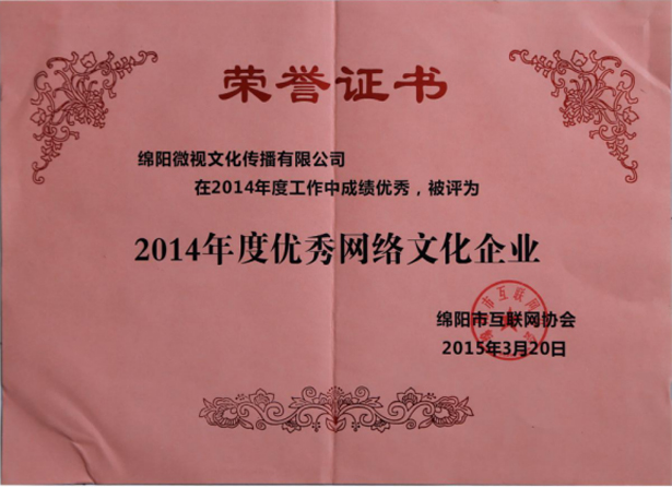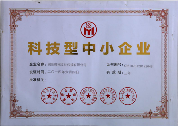 綿陽微視文化傳播有限公司為綿陽微電影協會會長單位、綿陽市高爾夫球協會理事單位、綿陽市文化產業促進會會員單位、綿陽市互聯網協會優秀網絡文化單位、綿陽市文明交通宣傳先進單位、中國網微電影頻道綿陽采編站、CCTVIP電視中國微電影頻道綿陽制作中心、2016軍民融合創新創業先進團隊、科技型中小企業;公司擁有廣播電視節目制作經營許可證;擁有了十多人的創作班子和近三十人的微電影攝制組,先后添置了專業影像制作器材(先進的拍攝設備高清4K電影機、電影攝像鏡頭群組、佳能攝像鏡頭群組、大小拍攝專業搖臂軌道、錄音燈光設備等專業設備)。先后為各個政府機構及企事業單位拍攝宣傳片及微電影百余部,截至目前獲得國際性獎項10余部(亞洲微電影藝術大賽獲得一部二等獎、7部三等獎、一部好作品獎)、(金紫荊國際新媒體電影大賽獲得3部單項獎及一部優秀獎);此外還獲得國內獎項20余部。